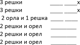 Продолжаем бросать монеты дальше: 4 раз: три орла – старый Ян,