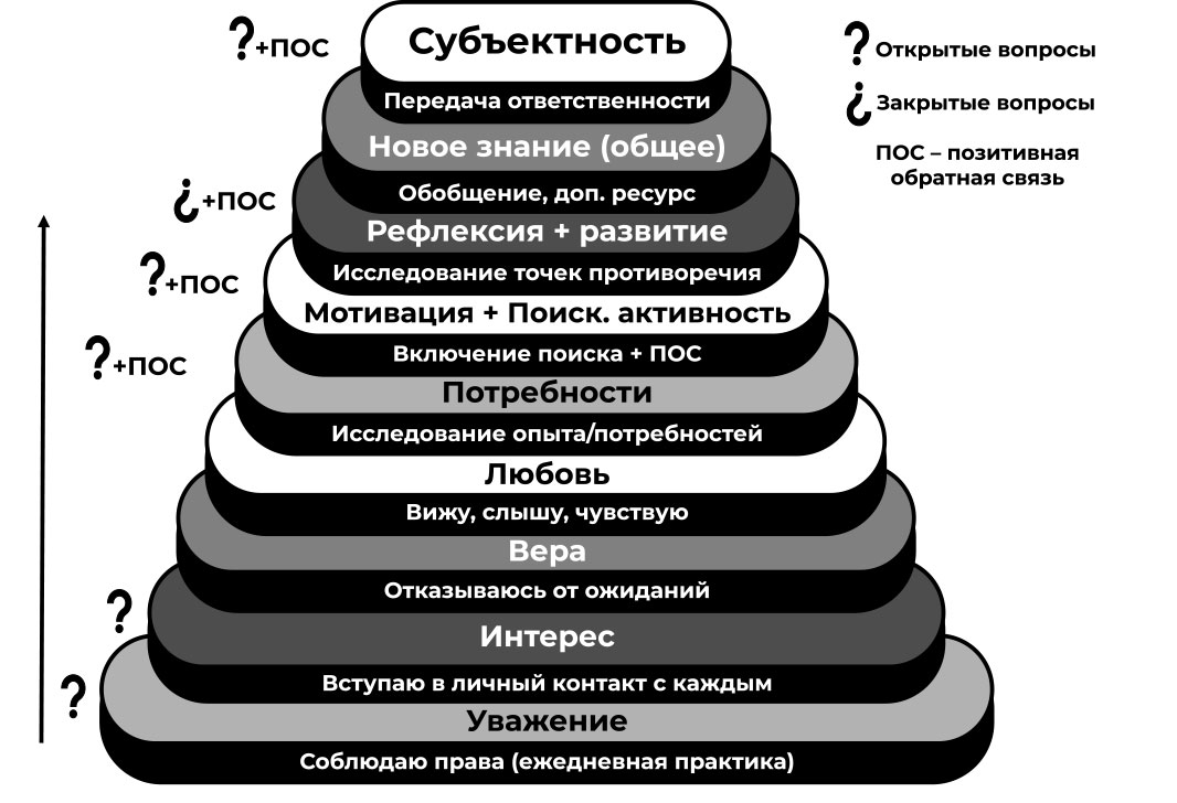 Именно применяя развивающий диалог к себе, мы становимся ценными, любимыми, уважаемыми, важными для себя и других. Такое же право быть важным и ценным для нас получает любой человек. Так удовлетворяется потребность быть личностью.