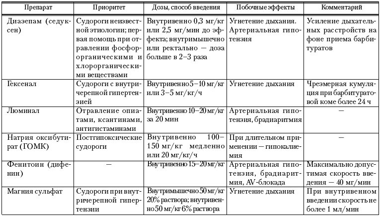 Характеристика противосудорожных препаратов (Цыбулькин Э. К., 2000)