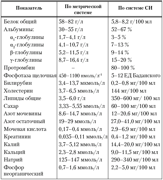 Показатели биохимического исследования крови у детей 3–14 лет (М. С. Игнатова, Ю. Е. Вельтищев, 1982)