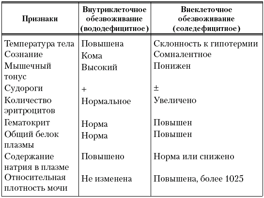 Вид обезвоживания находит отражение в клинической и биохимической картине заболевания (табл. 10).