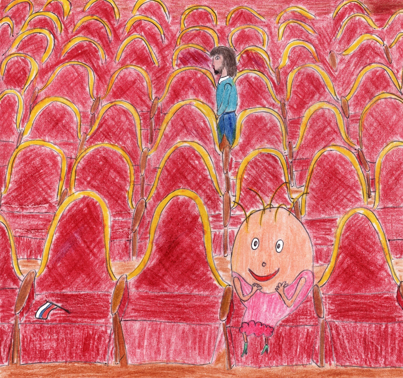 И каково же было её изумление, когда она обнаружила, что спектакль ещё не начался. Люди ходили в фойе и ждали третьего звонка. Оказалось, что главный актёр опоздал, а без него не могли начинать. Как только Земля сдала свои вещи в гардероб, прозвучал третий звонок. Она зашла в зал, и спектакль начался.