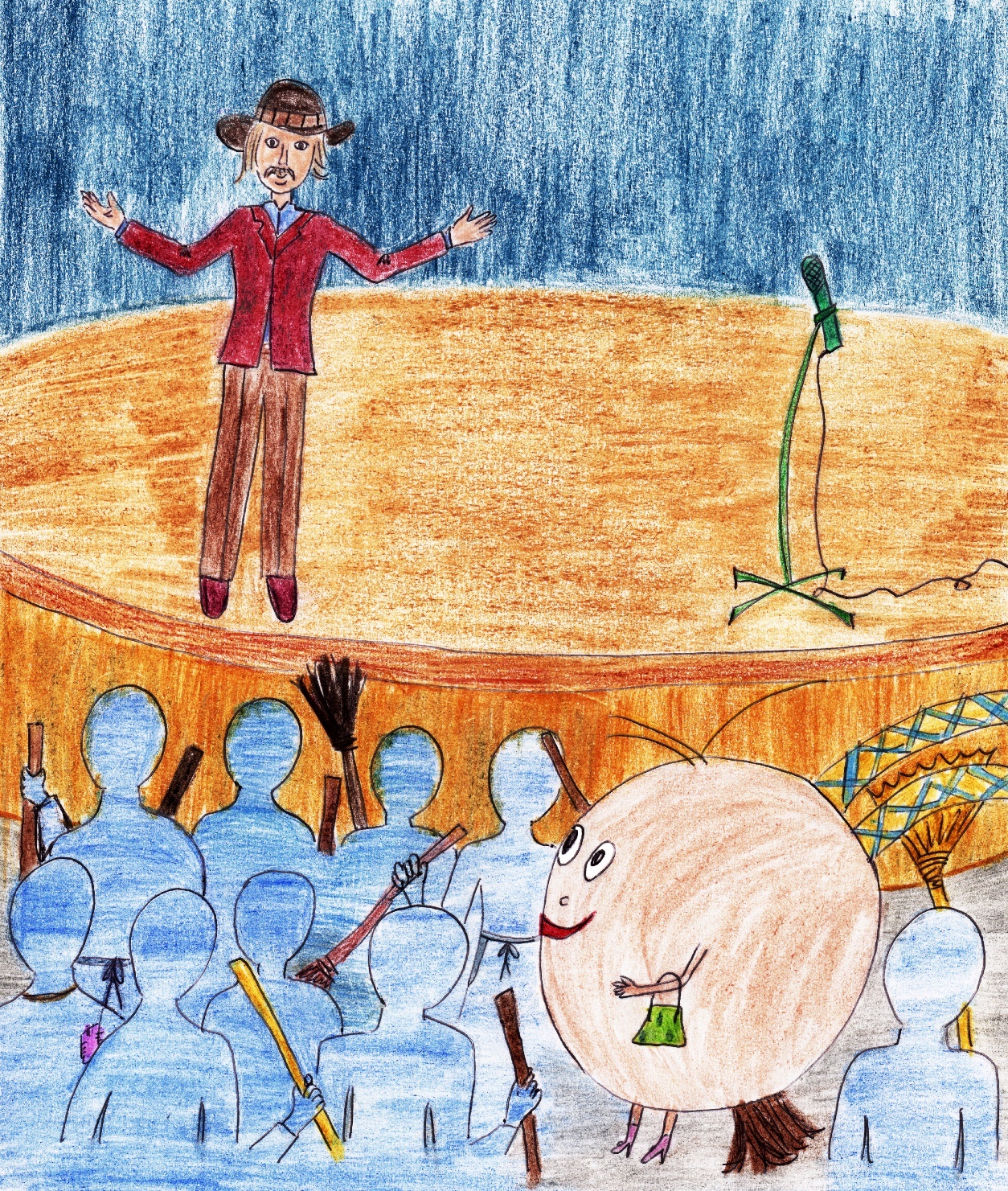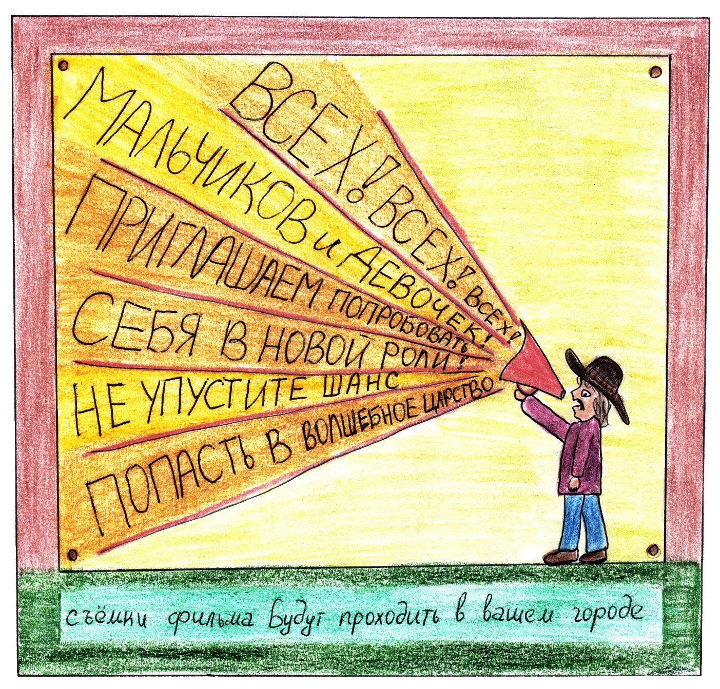 Земля никогда не хотела быть актрисой, и никогда не мечтала сниматься в кино. Но сейчас уж очень ей понравилось, как громко маленький человечек зовет всех через рупор, и она решила сходить. «Да! Он же зовет всех, всех, всех. Интересно, что там будет? Смогу ли я выступать? А может я потом увижу себя по телевизору? Хм… Сомнения в сторону! Я попробую!»