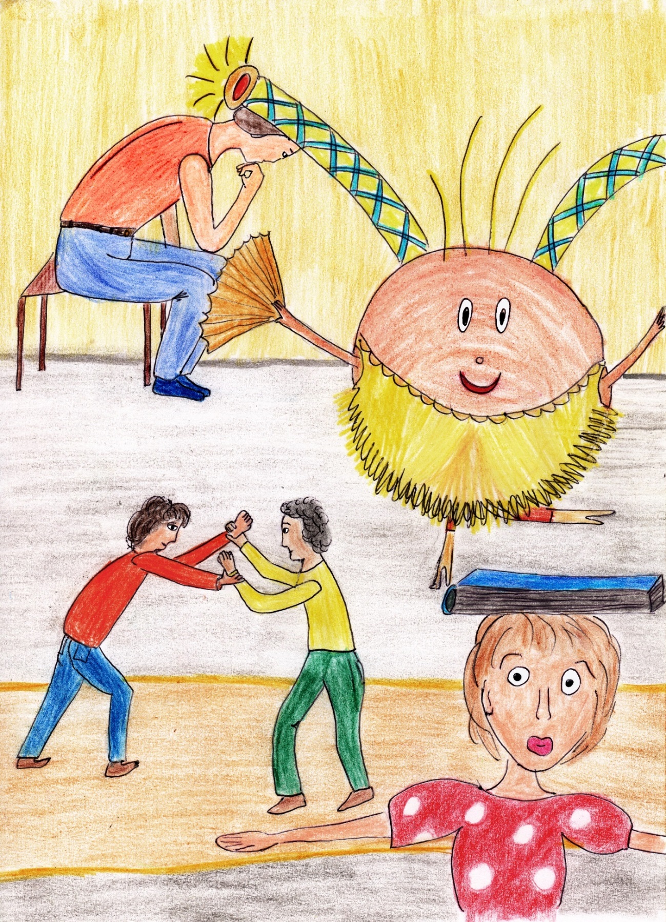 3. Как ты думаешь, дети изменились за то время, пока они занимались, готовились к съемкам фильма? Обратите внимание на то, что помимо приобретения новых навыков, таких, как умение петь или двигаться, дети приобрели новые качества, такие, как взаимопонимание и взаимовыручка. На иллюстрации видно, как вовремя друзья смогли подхватить Землю, падающую со сцены.