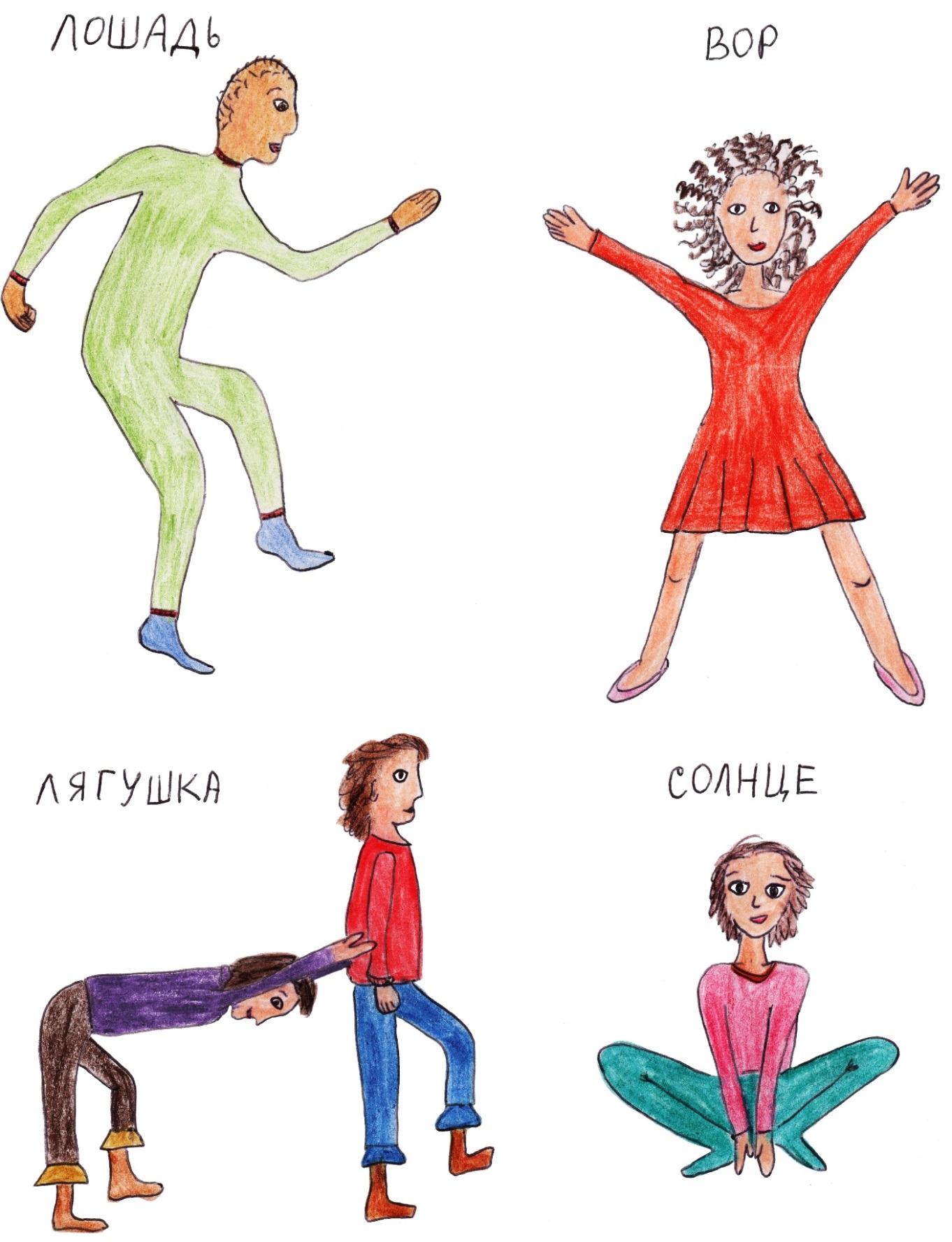 аждый ребенок на картинке что-то изображает. Догадайся, что именно, и соедини с подходящей надписью.