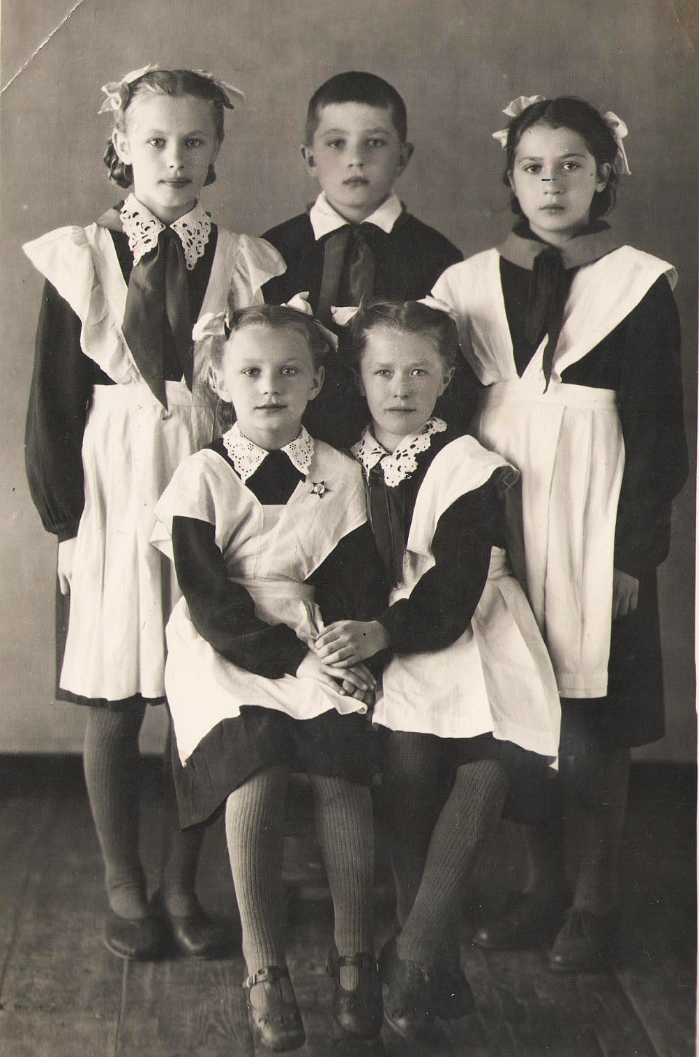 Позже появились железные звёздочки с маленьким Ульяновым-Лениным, нарисованным жёлтым. Тёмную невзрачную форму разбавляли белые воротнички и манжеты, которые шили или вязали сами. Наташа ходила в школу в красивых красных туфельках. Её всегда хвалили, что она не наступала в грязь и аккуратно обходила лужи. А её тетрадку с аккуратными крючочками однажды даже пустили по рядам, как образцовую.