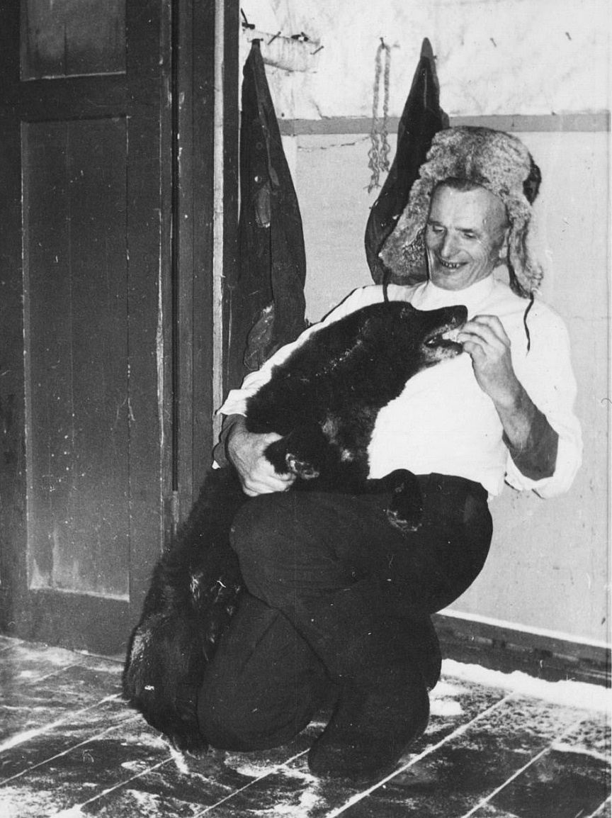 Когда уезжали, Серёжка Шуре говорит – «ты мне ничего на память не подарила, подари хоть собаку». Она ему конечно подарила. Дик хороший был, на медведя ходил. Медведи там прямо к дому подходили.