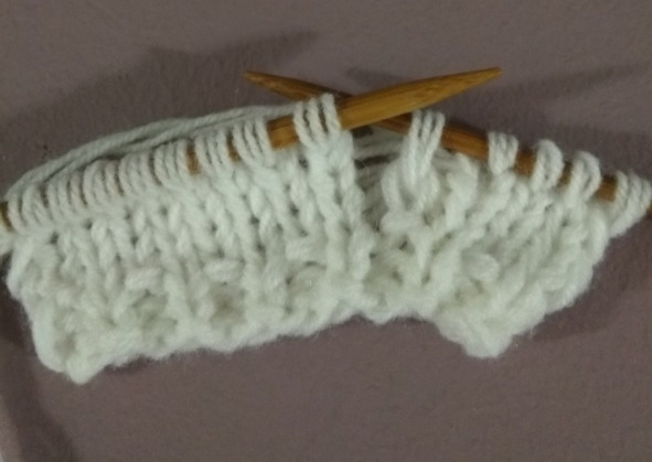 1 – 4 ряд резинки: кромочная, (1 лицевая, 1 изнаночная) – повторить 26 раз, 1 изнаночная