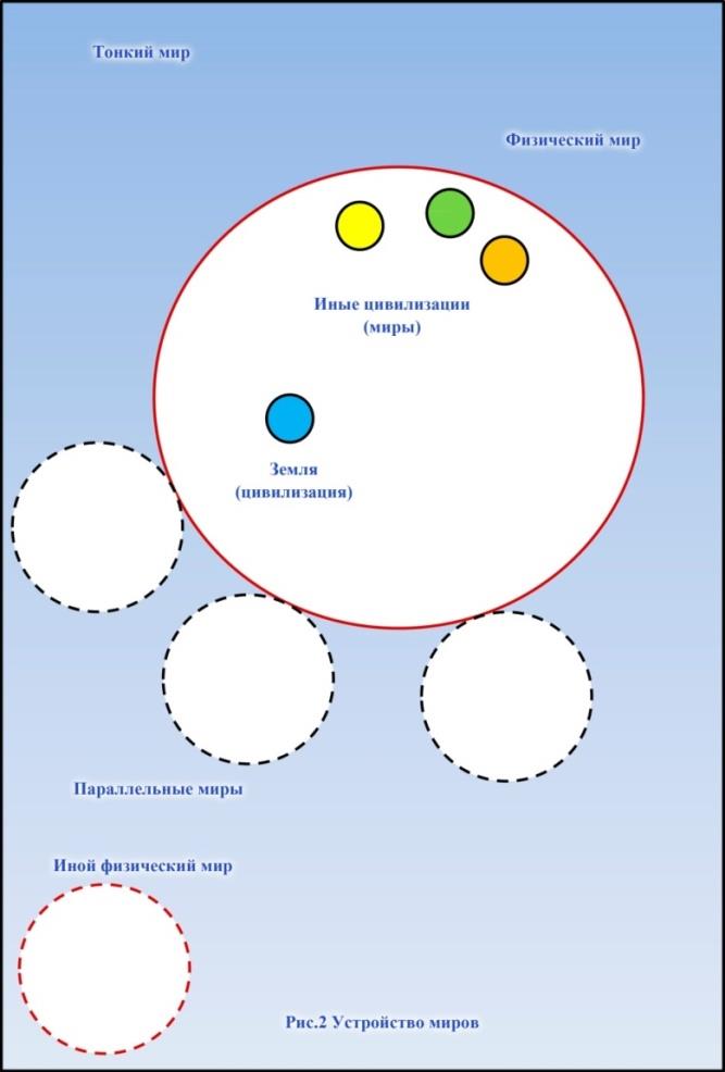 Нас повсеместно окружает физический мир, то есть, мир, действующий в соответствии с законами физики. Некоторые из них нам известны. Однако, по мере изучения этого мира, становится понятно, что есть определённые нестыковки. Существуют такие процессы, объяснить которые мы не в силах. К примеру, если принять скорость света за самую большую величину в природе, то совершенно неясны механизмы движения галактики, взаимодействия небесных светил во Вселенной. В результате мы вынуждены выдвигать теоретические предположения (версии), объясняющие механизмы явления. Иногда выводы поражают наше воображение. Так, наблюдая в телескопы скопления звезд, на ум приходит вроде бы очевидное – скорее всего, мы во Вселенной не одиноки. По теории вероятности представители разумной жизни могут существовать ещё на каких-то планетах. Их миллиарды. Получается, в одном физическом мире может заключаться огромное число цивилизаций (миров).