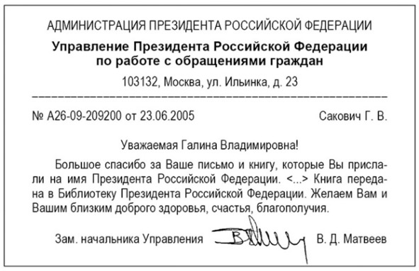 В первом письме были такие слова: «Искренне благодарим Вас за активную жизненную позицию…»