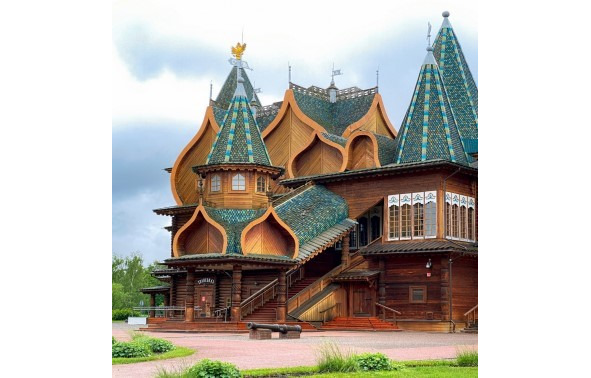 Дали испытание мастерам: лавку, что в горнице ставят, изукрасить узорами разными. Работу принимал сам царь. Проходил он мимо мастеров. Дошел до Святобора. Засмотрелся на его работу, обо всем забыл. Словно книга с картинками перед ним развернулась и речь свою о родной стороне повела: тут и леса дремучие, и звери дикие, и поля бескрайние, и избы деревенские, и березки нежные, и реки, и озера. Все это вплетено в волшебный узор из листвы и трав. Царь даже не стал дальше смотреть изделия мастеров. Спросил имя. И повелел Святобору взять помощников, сколько нужно, и к работе приступить. А остальным наказал во всем Святобора слушаться. С душою взялся за дело юноша. И появился не терем, а Чудо-Чудное: наличники резные, словно кружево; двери в каждой горнице не простой резьбой, а целыми картинами из жизни украшены. Нигде узоры не повторяются. Куда ни глянь – везде рука мастера видна.