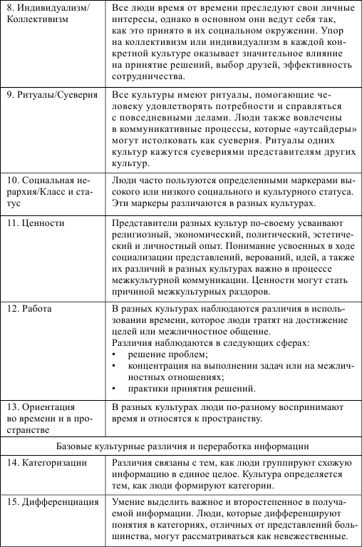Кросс-культурная компетентность – это знание жизненных привычек, нравов, обычаев, установок различных социумов, формирующих индивидуальные и групповые установки; индивидуальных мотиваций, форм поведения, невербальных компонентов (жесты, мимика), национально-культурных традиций, системы ценностей.
