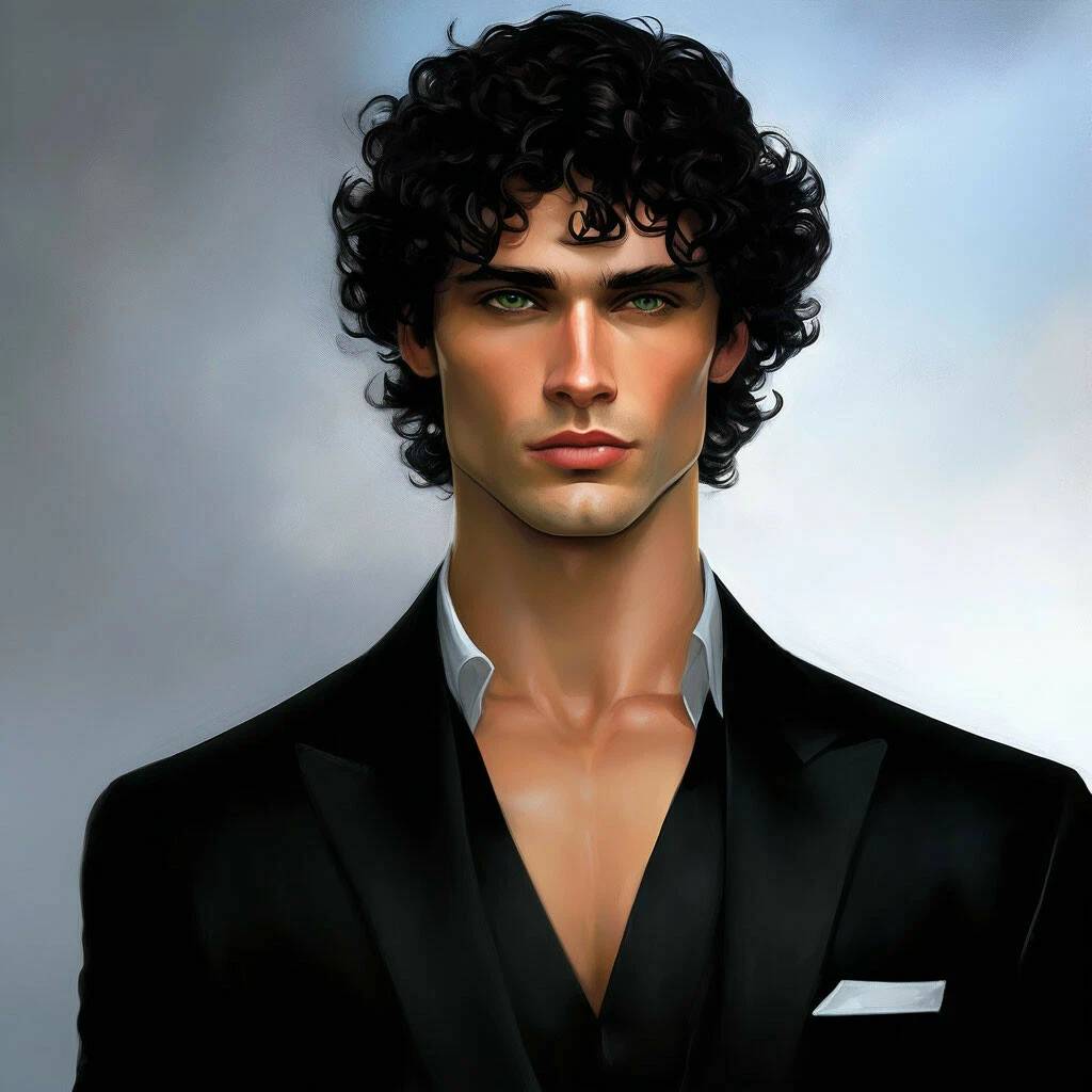 И теперь воспринимаю его всего, высокий, накаченный, но не слишком, как показалось с начала, просто он весь такой большой. Волосы короткие, чёрные, сильно вьются что придаёт слегка небрежный вид. Узкое лицо, прямой нос, широкие брови сведены к переносице, яркие пухлые губы слегка поджаты, острые скулы, придают хищности его образу. А вот глаза, ярко-зелёного цвета, выбивались из всей картины. Внешне он чём-то напоминал восточных мужчин. Ещё и небольшая щетина. Ну точно не русский. Но почему глаза такие яркие, линзы поняла я. Точно- он носит цветные линзы.