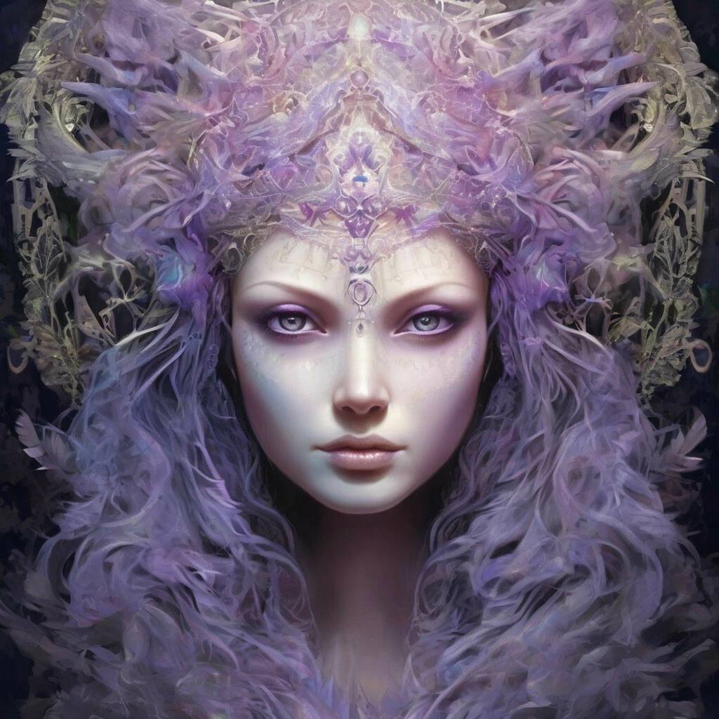 Начали проступать очертания призрачной девы, смотрящей на меня нереально сиреневыми глазами. Все ее тело словно бы состояло из перламутровой дымки и непрерывно трепетало на ветру, хотя ветра не было, не было ничего. Лишь я и она, глаза её были неподвижны, и смотрели так проницательно. Я поняла, что на меня смотрит богиня, и это богиня не нашего мира. Откуда я это знала? Может это предчувствие. Но я четко понимала, что нахожусь уже не в своем мире, возможно даже не в нашей вселенной.