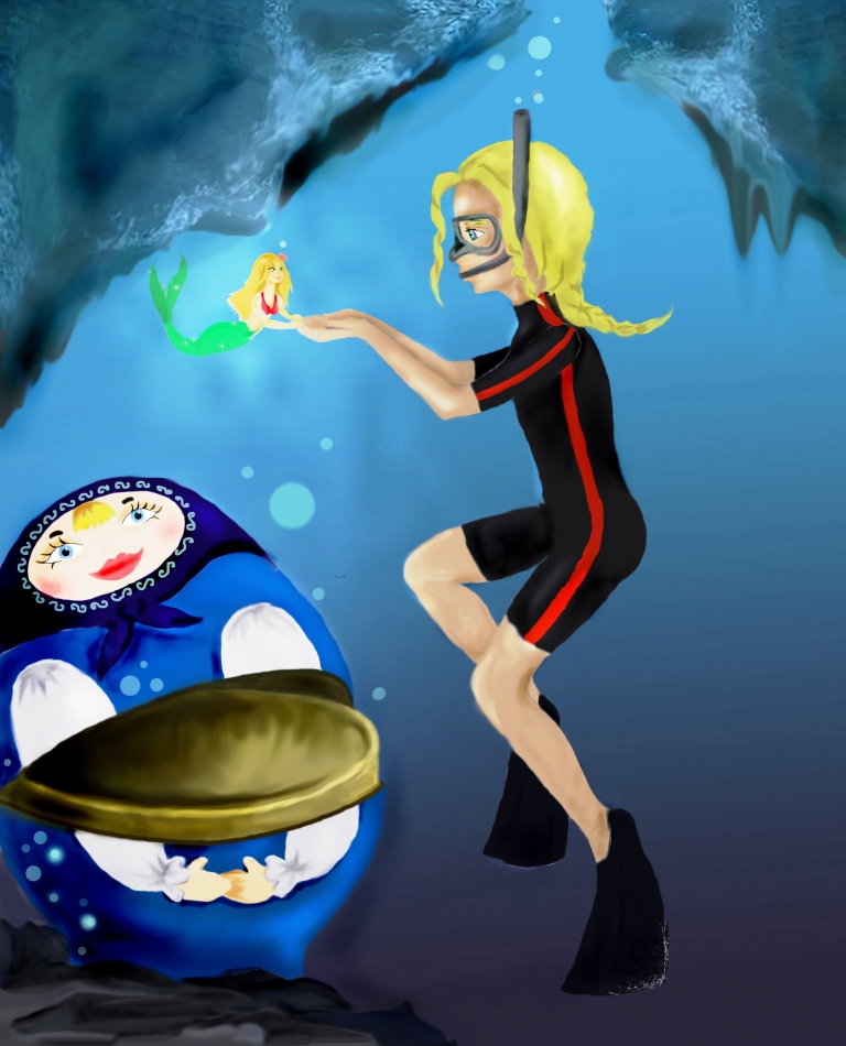 Распахнула глаза Полинка, почувствовала легкий шок от ледяной воды. Смотрит непонимающе. Как такое возможно? Парит она в невесомости, тело облегает плотно гидрокостюм, в одной руке большой фонарь, другую руку держит русалка. Кругом бело и прозрачность воды абсолютная.