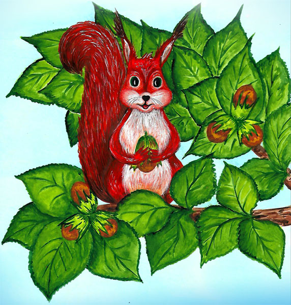 Героиня детских сказок,Разных песен и потешекЗапасает, собирает:Тут – грибочек, там – орешек.Шубка рыжая на ней.Кто она? Скажи скорей!