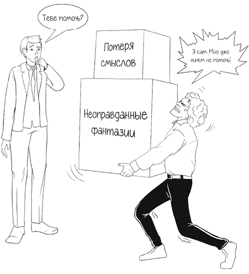 усталости: начинает выяснять и устранять не глубинную причину – несоответствие ожиданий и реальности или отсутствие смысла, – а ее внешние проявления.