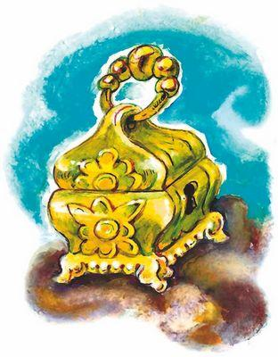 – Пираты высадились на берег около красной скалы, но через час уплыли. Художник пошёл туда и в тайнике нашёл клад – золотой сундучок с Золотым ключиком! Круз открыл крышку сундучка и увидел много-много драгоценностей и золотых монет.