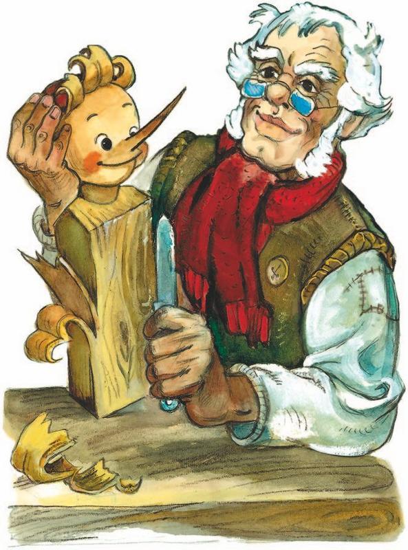 На берегу моря, в старом каменном доме жил столяр Джузеппе по прозвищу Сизый Нос. Это он подарил папе Карло полено, из которого тот вырезал деревянного человечка.