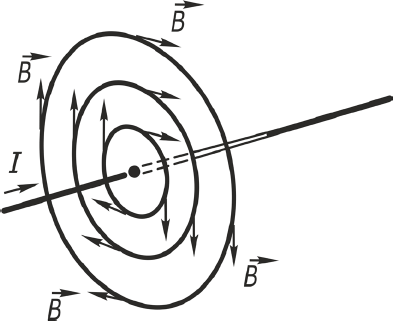Рис. 4. Силовые линии магнитного поля вокруг проводника с током