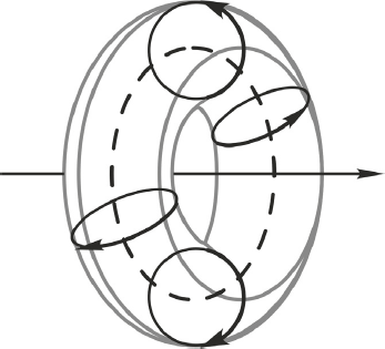 Исходя из «метрической теории относительности», о которой говорилось выше в примечании [61], все направления импульсов на рис. 2 равнозначны по отношению к физическому (Евклидову) пространству. А подобное возможно в нашем привычном физическом мире лишь в одном случае – в случае вихревого движения (вихря), силовые линии которого всегда замкнуты (рис. 4).