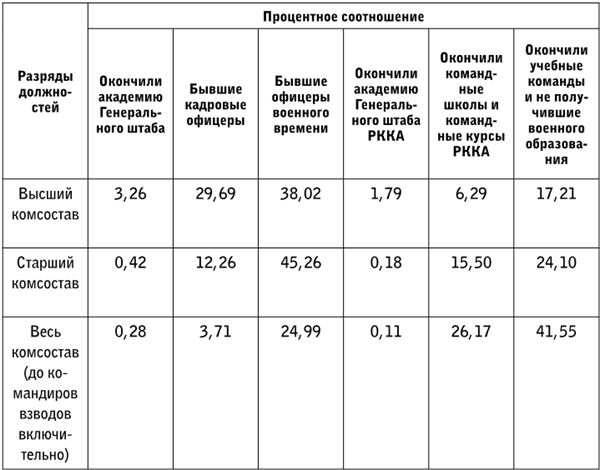 Итак, 41,5 % комсостава не был подготовлен для занятия командных должностей. Такова была цена создания массовой армии.