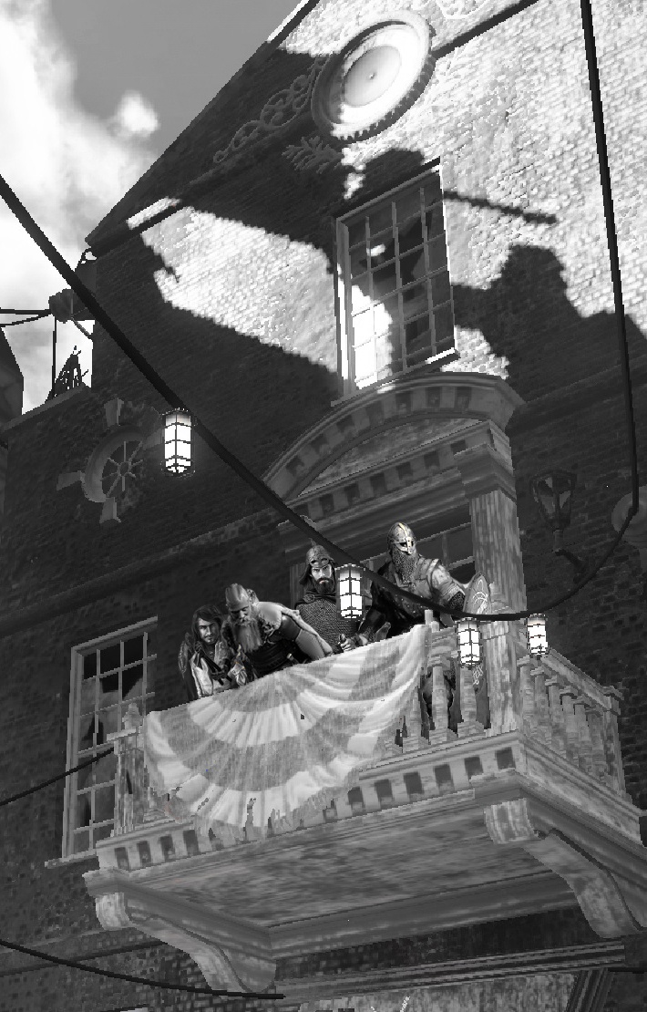 Наживка была за глочена. И тут я услышал, как за нашими спинами раздались звуки схватки и лязг оружия и на балкон ворвались несколько головорезов, прорвавшихся через охрану явно с убийственными намереньями. Первый нож просвистел мимо и впился в руку Серакузу от боли он вскрикнул и блестящий меч, блеснув в воздухе, срубил голову напавшему мерзавцу. В дверях возникли пять злобных головорезов, вооруженных мечами и щитами за их спинами замаячили арбалеты.