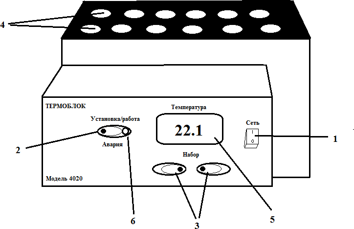 4. После достижения заданной температуры установите пробирки с исследуемыми растворами в ячейки термоблока (4) и оставьте их в течение необходимого срока инкубации.