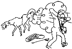 Прихватив топорик, я прогулялся в близлежащий лесок и отыскал подходящую березу. Вырубил рогульку, не очень тяжелую и достаточно длинную. Древко побольше двух метров и развилина метровая. Между концами рогов сантиметров шестьдесят, наверное. В питомнике медной проволокой прикрепил к рогам довольно толстую веревку, так чтобы она сильно провисала, но вокруг собачьей шеи могла быть плотно закручена не более чем двумя-тремя оборотами рогульки. Надел я на всякий противопожарный дрессировочные штаны, нашел подходящий намордник и бинт, позвал с собою вожатого Женю, проинструктировал его и взялся за ловлю.