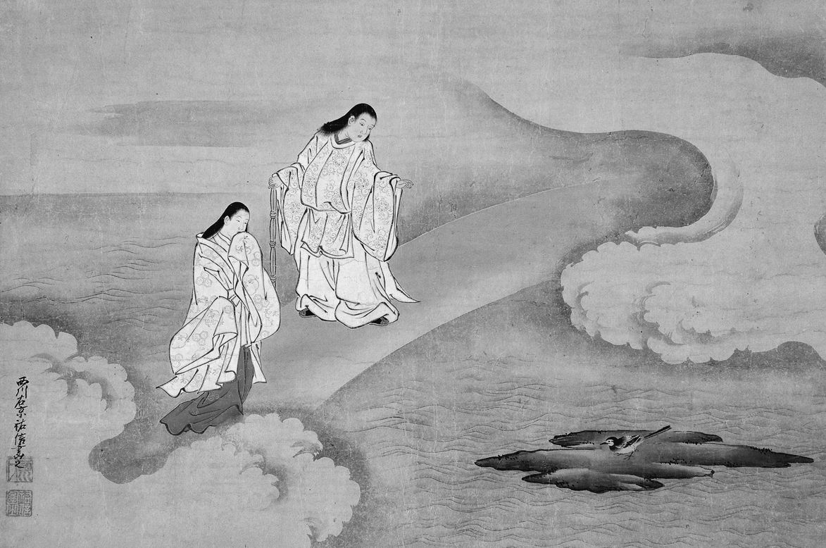 Идзанаги-но ками и Идзанами-но ками. Старинная японская гравюра