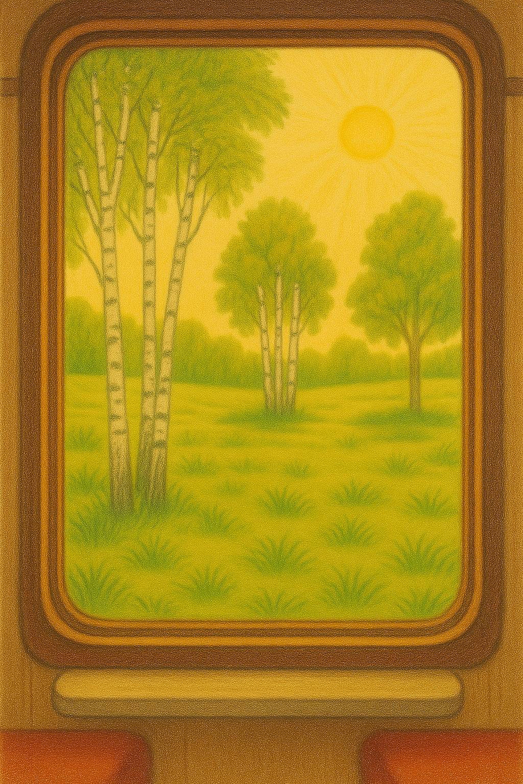 Мы с Квиллом сели на остановке и стали ждать электричку. Если верить приложению здесь ходит электричка до пригорода, села «Солнечное». Но нам с Квиллом нужно будет выйти раньше, между селом и городом и будет находиться Ботанический сад, остановка так и должна называться.