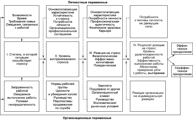 Согласно модели Перлмана и Хартмана, индивидуальные характеристики, рабочее и социальное окружение важны для восприятия, воздействия и оценки стресса в совокупности с эффективным или неэффективным преодолением стрессовой ситуации. Данная модель включает в себя четыре стадии.