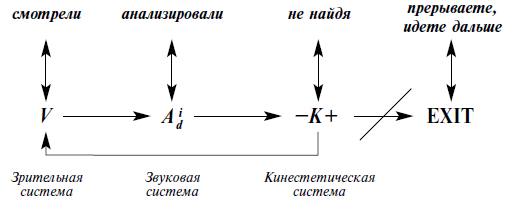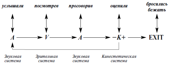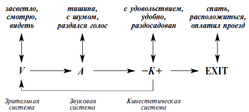 Для нас достаточно будет заметить один-два первых предиката, так как последний этап всегда является сигналом кинестетической системы (К).