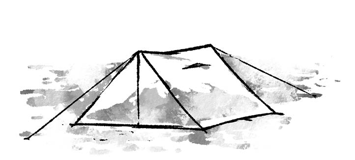 Er kroch vorsichtig im Zelt nach hinten und probierte, ob er durch den Schlitz verschwinden könnte.