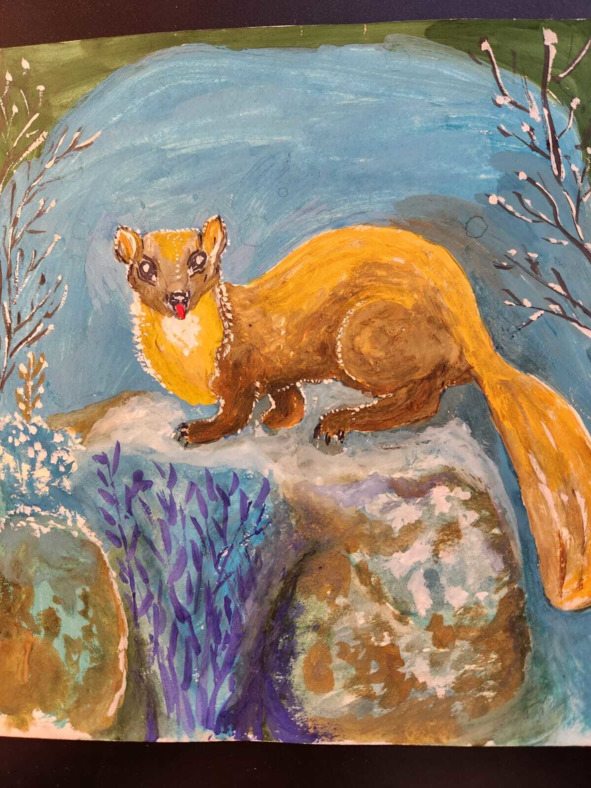 Куница, потянувшись всем телом, ощутила мягкость травы. Тут же вскочила, побоявшись упасть в трясину с островка. Однако это уже был не клочок земли, а уходящая вдаль лесная чаща, залитая солнцем. Множество разнообразных цветов – розовых, белых, синих – источали сладкий запах. Кустарники усыпаны оранжево-красными ягодами. Пели птицы, порхали бабочки, через её головку, едва не задевая короткие ушки, прыгнули кузнечики. На её глазах лес менялся, взрослел. Появлялись стайки берез, пушистые ёлочки. Услышав журчанье воды, она, крадучись, направилась на этот звук. Жадно припала к воде. Что-то насторожило её: она не увидела в отражении воды своей острой мордочки – там проявился незнакомый образ. Быстро отпрыгнув в сторону, она оскалила острые зубки, напрягла мускулистые лапки, приготовившись дать отпор неведомому врагу. Но не было острых когтей на пальчиках, покрытых бурой шёрсткой – пальцы вдруг удлинились, стали светлыми с гладкой кожей. Где-то она видела такие пальцы! Где? В том, другом мире, где родилась и жила маленькая куница – это были руки юной девушки, собиравшей спелые ягоды шиповника. Девушку потом позвала старшая женщина, наверно мать: