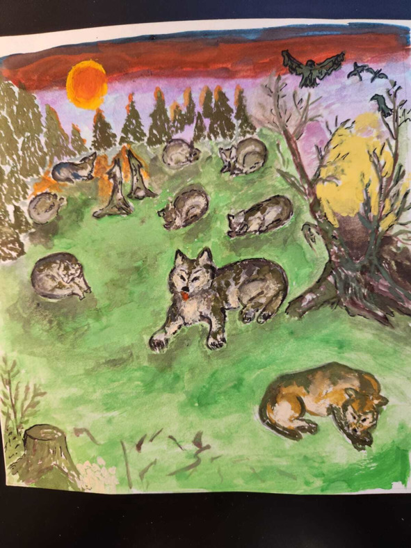 Вот и настал час её могущества. Она долго к нему готовилась. И стаю направила именно в это непростое место для лёжки, о котором знала только она. Здесь росло рогатое дерево с раздвоенным стволом. Его скрюченные ветви о захватывали растущие рядом другие деревца и выпивали из них жизненные силы.