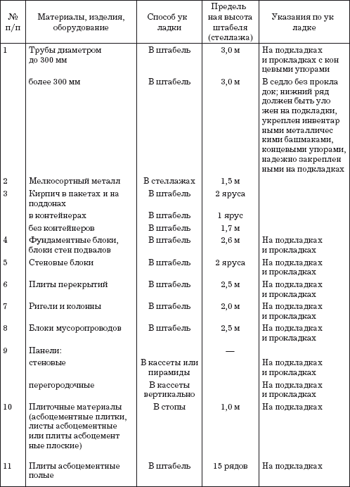 Укладка грузов должна обеспечивать их устойчивость при хранении и транспортировании, разгрузке транспортных средств и разборке штабелей, а также возможность механизированной погрузки и выгрузки. Дештабелирование грузов должно производиться только сверху вниз.