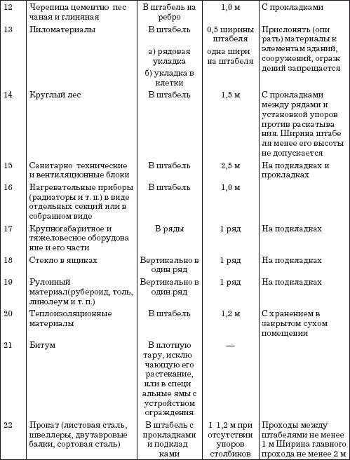 Не следует укладывать штабель к штабелю вплотную во избежание обвалов при разборе соседнего штабеля. Расстояние между рядами штабелей должно быть определено с учетом возможности установки тары в штабель, снятия тары со штабеля грузозахватными устройствами и обеспечения необходимых противопожарных разрывов.