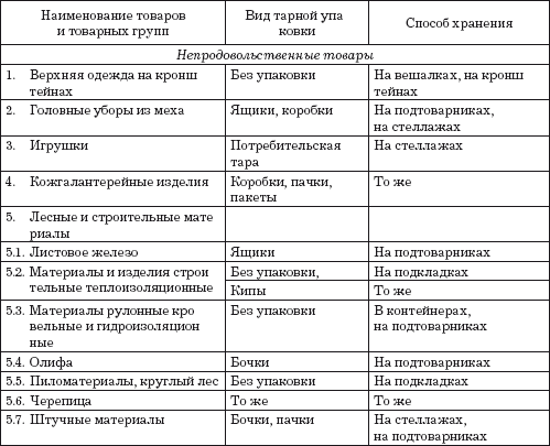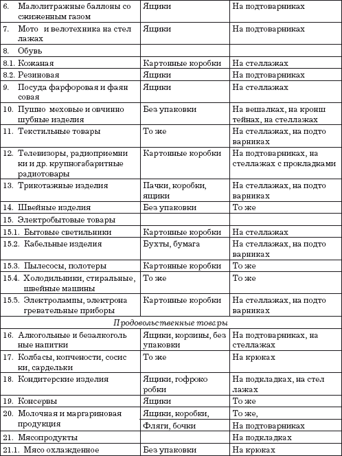 Рекомендуемые способы хранения находящихся в организациях отдельных товаров и товарных групп с учетом вида тарной упаковки