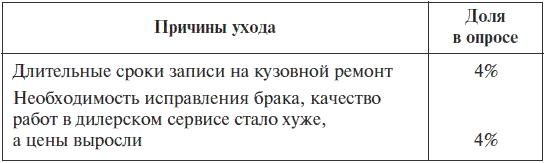 Причины ухода клиентов от дилеров (опрос GIPA, 2010 г.)