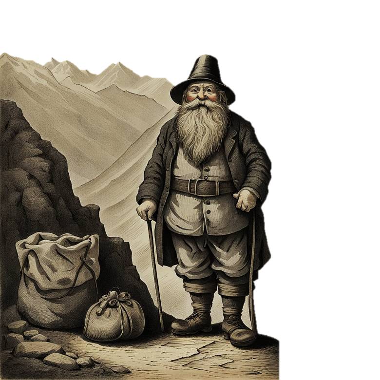 Забрав этот медальон, он решил отдохнуть и поспать. Наступил рассвет, Лунгард отдохнул и пошёл дальше, пробираясь сквозь глубокие красивые деревья, кусты. Он шёл всё дальше, и дальше, и наконец-то дошёл до высокой, большой горы. Дойдя до горы Лунгард начал взбираться наверх, взбираясь всё выше и выше, спустя 2 часа он находит мешочек. Волк решил обыскать мешочек, но подойдя он обнаружил маленького гномика.