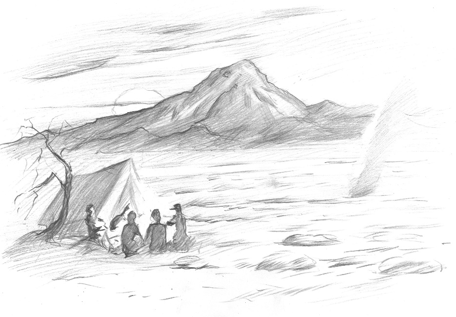 Следующие несколько часов ничего практически не менялось, но ставить палатку надо было за пару часов до рассвета, чтобы успеть хоть немного собрать воды. Неожиданно Гайдзин поднял руку в предупреждающем жесте…