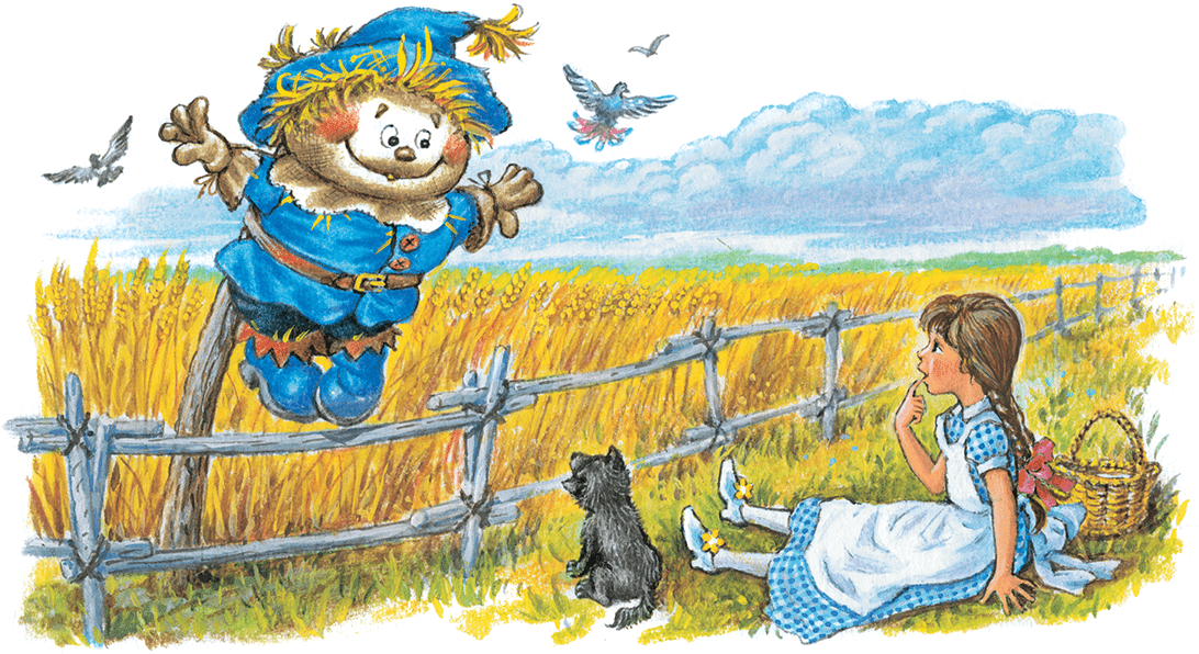 Элли внимательно разглядывала смешное разрисованное лицо чучела и удивилась, увидев, что оно вдруг подмигнуло ей правым глазом. Она решила, что ей почудилось: ведь чучела никогда не мигают в Канзасе. Но фигура закивала головой с самым дружеским видом.