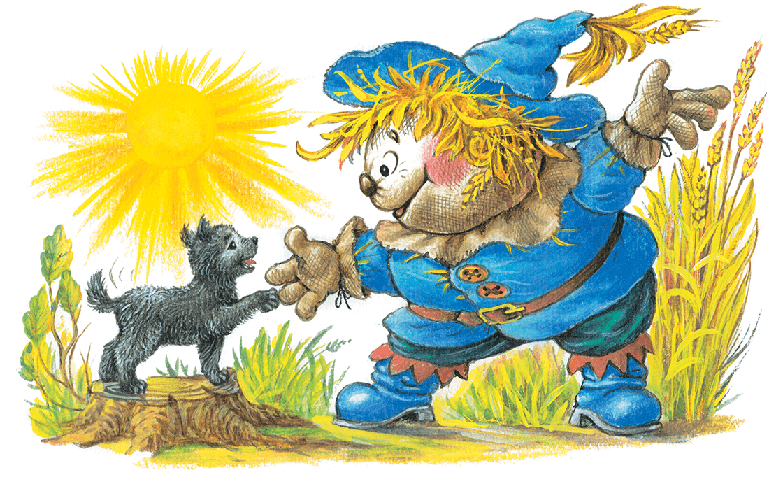 – Ах, виноват, виноват! – извинился Страшила и пожал пёсику лапу. – Честь имею представиться: Страшила!