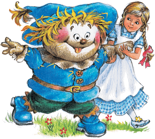 Элли смотрела на него с удивлением. Она не могла понять, как чучело, набитое соломой и с нарисованным лицом, ходит и говорит.