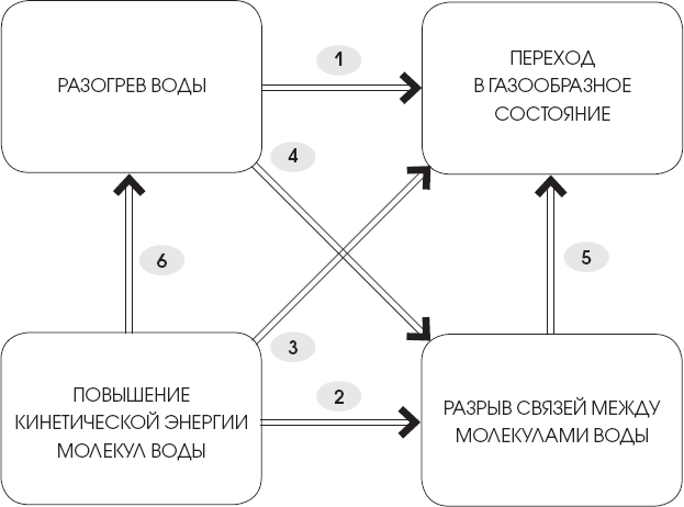 Рис. 1. Схема каузальных связей процесса кипения воды по Сёрлу