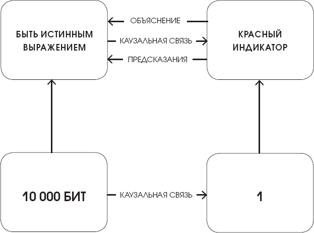 Парировать возражение можно небольшим усовершенствованием эксперимента. Допустим, что программисты предварительно договорились, какие истины включить в экспертную программу. Тогда их базы данных должны соответствовать друг другу, а регулярность работы аппарата – соблюдаться. Но в таком случае неясно, что является каузально эффективным свойством. «Быть истинным» или «быть ложным выражением» в качестве таких свойств уже не работают. Так как в случае с предварительно согласованной базой высказываний программисты могли бы допустить совместные ошибки. Также в ходе исследования ящиков ученые могли случайно набрать последовательность символов, которая была бы истинной, но при этом не вошла бы в согласованный массив знаний Эла и Бо. В качестве кандидата на каузальную эффективность можно принять свойство «быть истинным выражением для… машин А и Б»[20]. Но оправданно ли это?