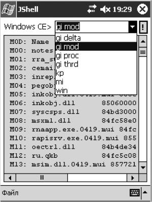 Это весьма полезная программа для отладки приложений на устройстве. Эта утилита выводит на экран список процессов, загруженных модулей и распределения памяти устройства. Внешний вид запущенной программы показан на рис. 2.9.