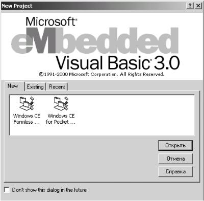 Запустить eVB можно либо при помощи команды меню Пуск (Пуск ► Программы ► Microsoft eMbedded Visual Tools ► eMbedded Visual Basic 3.0), либо найти в папке установки исполняемый файл программы (при стандартной установке это будет C: \Program Files\Microsoft eMbedded Tools\EVB\ EVB3.EXE). При запуске на экран будет выведено окно создания проекта (рис. 3.1).