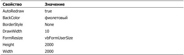 4. Пользуясь инспектором свойств, установить для формы Form1 значение true для свойства AutoRedraw и значение 20 для свойства DrawWidth. Остальным свойствам можно оставить их значения по умолчанию.